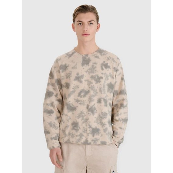 Ta męska bluza dresowa 4F to idealny wybór zarówno do casualowych, jak i sportowych stylizacji. Krój regular zapewnia wygodne dopasowanie, a strukturalna dzianina o wyraźnym splocie nadaje jej charakteru i poprawia komfort użytkowania. Wykonana w 100% z bawełny, bluza jest miękka, trwała i przyjemna w dotyku — idealna do noszenia przez cały dzień. Okrągły dekolt z ribowaniem, elastyczne mankiety oraz dół ze ściągaczem dbają o stabilne dopasowanie. Wkładana przez głowę i pozbawiona kieszeni, zachowuje klasyczny, minimalistyczny wygląd. Dodatkowym atutem jest tie-dye barwienie, które nadaje bluzie unikalny styl.