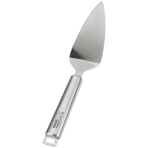 Łopatka wykonana z wysokiej jakości stali nierdzewnej. Idealna do nakładania ciast, tortów, pizzy. Oryginalny produkt greckiej marki NAVA z linii przyborów kuchennych Acer. Wyprodukowano zgodnie z europejskimi standardami.