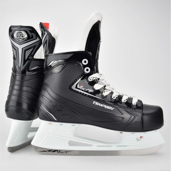 Łyżwy hokejowe TEMPISH Volt-T Max Niezawodność, komfort i trwałość dla amatorów hokeja Łyżwy hokejowe TEMPISH Volt-T Max zostały stworzone z myślą o amatorach, którzy poszukują wygodnych i solidnych łyżew do regularnej gry i treningów. Dzięki wytrzymałym materiałom i anatomicznemu dopasowaniu zapewniają stabilność, ochronę oraz komfort nawet podczas długiego użytkowania. Głowne cechy: Wytrzymała konstrukcja: Cholewka wykonana z kompozytu termoplastycznego zapewnia długą żywotność i odporność na intensywne użytkowanie. Komfort i dopasowanie: Podszewka z nylonu CAMBRA oraz anatomicznie profilowana wkładka i wyściółka z pianki w okolicy kostki gwarantują wygodę i wsparcie. Ochrona i stabilność: Język z PVC i 9 mm filcu chroni przed uciskiem i otarciami, a anatomiczna skorupa wspiera kostkę i ścięgno Achillesa. Wysoka jakość jazdy: Ostrze TEMPISH 7000 ze stali powlekanejj zapewnia trwałość, płynny ślizg i doskonałą kontrolę. Łyżwy hokejowe TEMPISH Volt-T Max to idealny wybór dla amatorskich graczy, którzy chcą połączyć wygodę, solidne wykonanie i pewność ruchu na lodzie. Specyfikacja techniczna - Łyżwy hokejowe Zalecane zastosowanie Sport rekreacyjny i treningowy, początkujący i zaawansowani łyżwiarze Materiał zewnętrzny Bardzo wytrzymały, twardy kompozytowy materiał termoplastyczny Materiał wewnętrzny Nylon szczotkowany CAMBRA Budowa języka Język anatomiczny, materiał: specjalny odporny PVC + filc 9 mm Budowa Anatomiczny kształt szkieletu buta w okolicy kostki i ścięgna Achillesa, jednoczęściowy szkielet z kompozytowego materiału termoplastycznego Ostrze TEMPISH 7000 stal powlekana System mocowania Sznurowadła Wyściółka Anatomiczny krój z piankową wyściółką w okolicy kostki