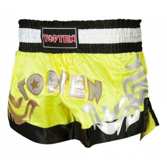 Spodenki do kickboxingu "TOP TEN" NEON żółto-czarne